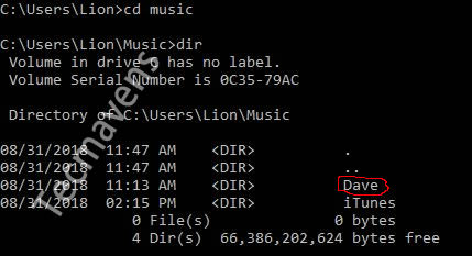 Step 3: Now that the target folder “Dave” has been displayed, issue the following command: “attrib +h dave” and press enter to hide the folder “dave”. By the time you go back to check the Music folder, you will realize that the folder “dave” has been hidden. To make the dave folder visible again, type “attrib -h dave” to unhide the dave folder as shown below: